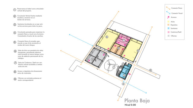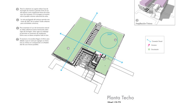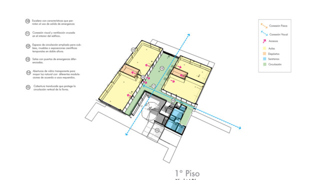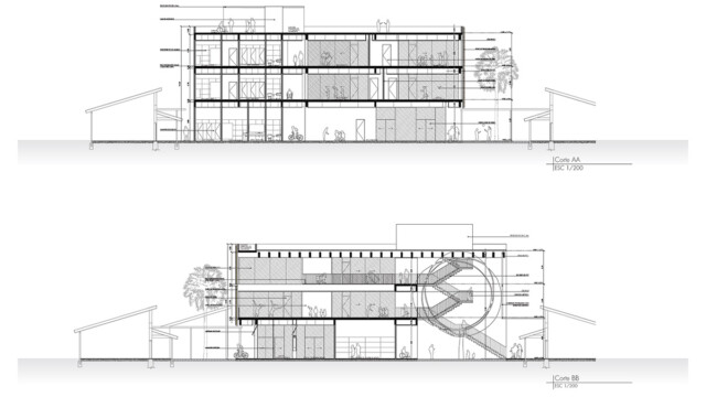 The overall idea is based on the previous building experience that demanded a limited use of intermediate spaces. Aimed at maximizing natural light and ventilation, this project opens to all sides, with ample and transparent ground-level classes that can be used for events and expositions.