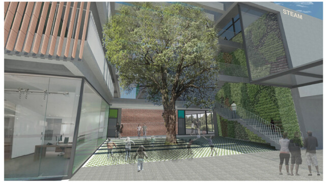 This project participated in the competition for the second new building of the American School of Asuncion, intended to gather all STEAM-related activities (Science, Technology, Engineering, Art, Math) by demolishing part of the existing old buildings.